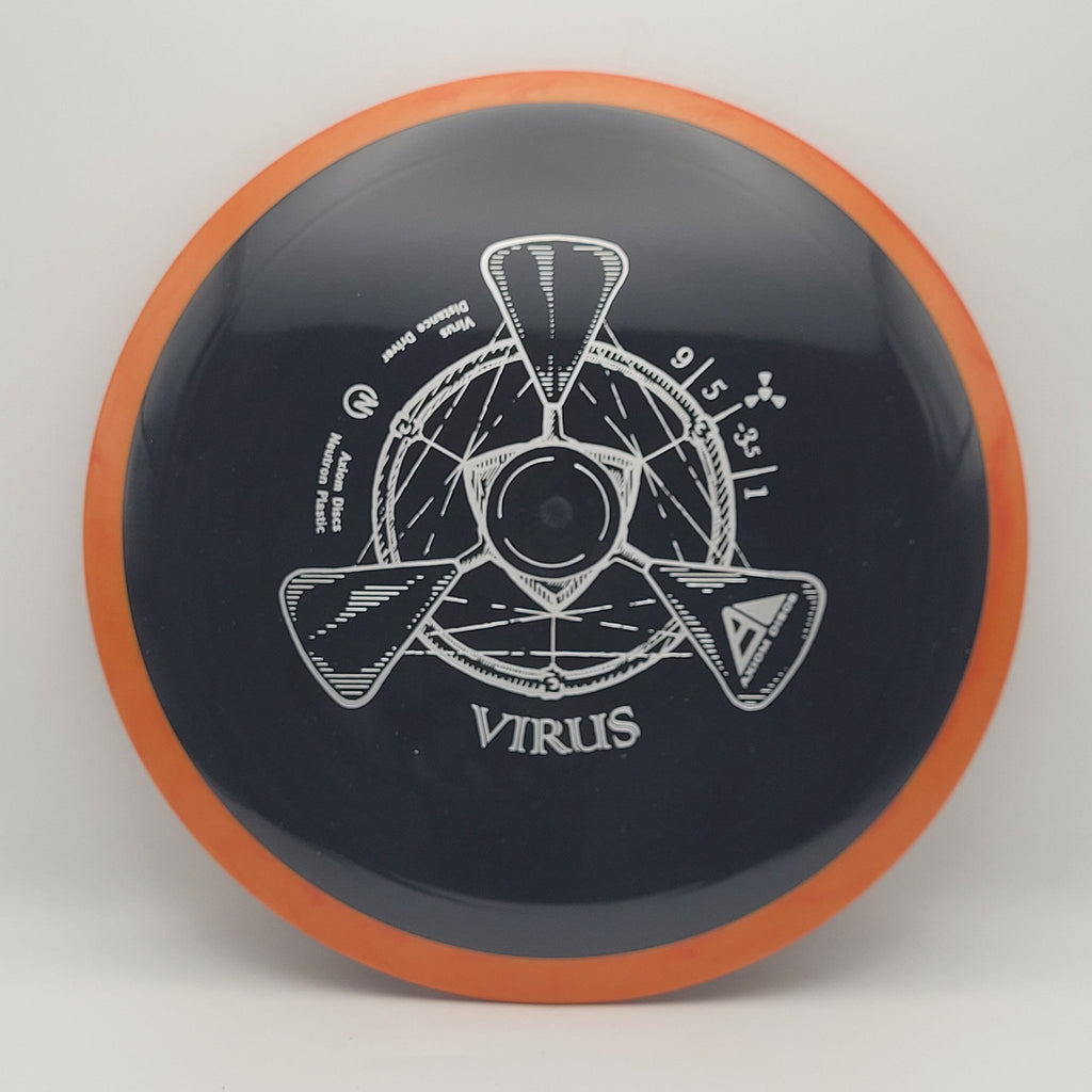The Virus is Axiom’s easiest-to-throw distance driver, with a glide and responsive understability that keeps it in the air. Power throwers will be able to flex huge turnover shots with straight forward fade. Average throwers will be able to extend and shape lines using the Virus’ turn and gentle fade. Compared to the MVP lineup, the Virus resembles a worn-in Impulse.
