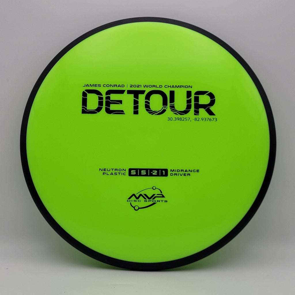 Fitting perfectly between the Axiom Hex and MVP Uplink, the newest addition to the James Conrad lineup slides in with flight numbers of 5 | 5 | -2 | 1. As a backhand dominant player, Conrad is known for his beautiful turnover lines, and the Detour excels at those long panning turnovers as well as easy hyzer-flips. Experienced players will find the Detour to be exceptionally easy to manipulate for a wide variety of shot shapes, while newer players will find a delightfully straight flier, perfect for learning the game.