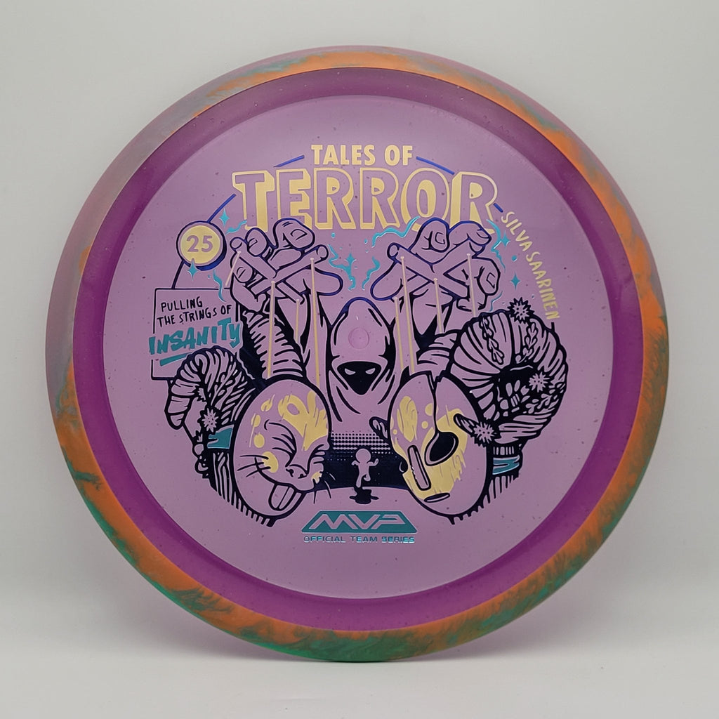 Beware the one pulling the strings during the Finnish Harvest Festival! Stamp newcomer Damian White unveils his first MVP stamp for this Halloween comic inspired design on the Particle Proton Insanity, a warning that some ornaments created for this event are a bit more ghoulish than they appear. The Insanity is a stable-understable driver that players will find easy to manipulate, with average power throws being remarkably straight with forward pushing fade, and higher power throws resulting in precise hyzer-flips, turnovers, and beautiful s-lines. Don’t let the course pull your strings - grab a Particle Proton Insanity today and prove who the true master is.